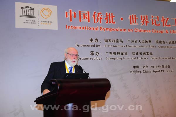 世界记忆工程亚太地区委员会主席埃德蒙森在研讨会致辞