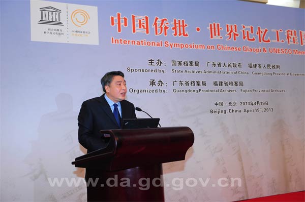 国家档案局局长、中央档案馆馆长杨冬权介绍了中国政府对包括侨批档案在内的档案文献遗产的抢救、保护和开发工作。1992年联合国教科文组织发起世界记忆工程后,中国也成立了“世界记忆工程”全国委员会,并在此框架下成立了“中国档案文献遗产工程”领导小组和国家咨询委员会,负责《中国档案文献遗产名录》的评选工作。截至目前,已有113件、组档案文献入选《中国档案文献遗产名录》,7项档案文献入选《世界记忆名录》。