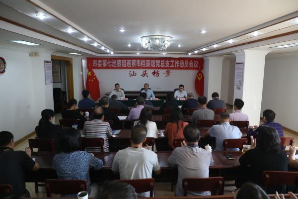 根据汕头市委关于巡察工作的统一部署,2019年11月12日上午,市委第七巡察组召开巡察市档案馆党总支工作动员会。会上,市委第七巡察组组长肖忠作动员讲话,市委巡察办副主任陈锡汉就做好巡察工作提出要求,市档案馆馆长黄海燕主持会议并作表态发言。市委第七巡察组全体成员、市档案馆领导班子成员出席会议,市档案馆全体干部职工参加会议。