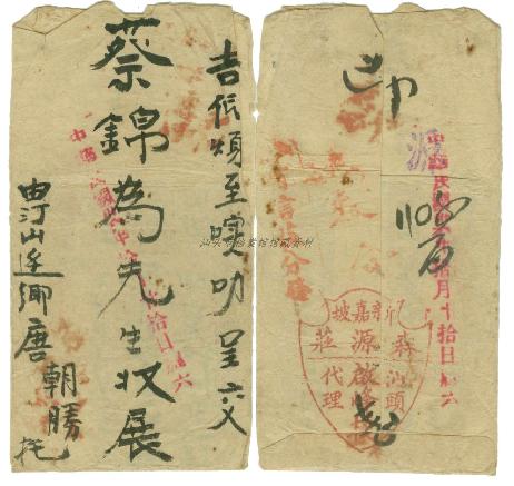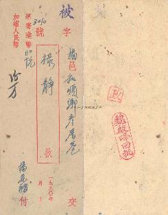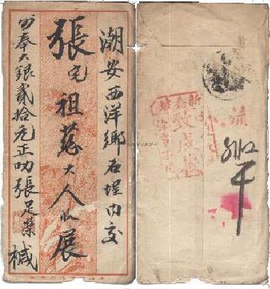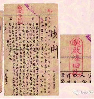 ▲杨老猪寄揭邑和顺乡禄静侨批,上加盖魏启丰号回批印章