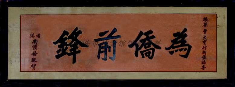 2015年,汕头市老批局光益裕经理人的后裔陈一帆先生遵其先严陈照明先生之托,特将香港南顺发行为振华丰大宝行新张誌喜的大幅横匾“为侨前锋”捐赠给侨批文物馆。