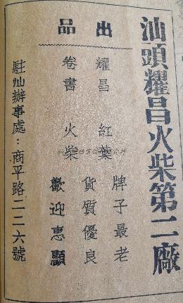 民国时期汕头部分火柴厂广告