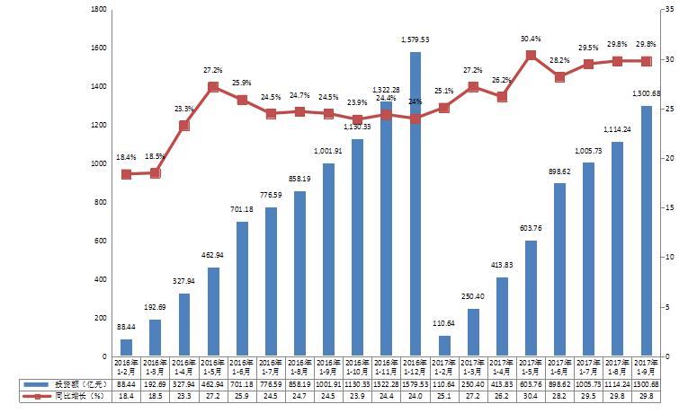 2016年~2017年前三季年全市固定资产投资运行情况