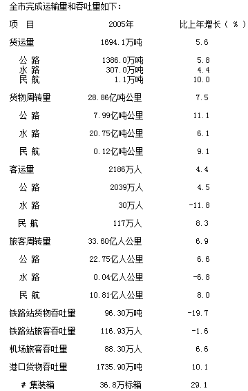 交通运输稳步增长。港口运输增势良好,客货运输能力进一步增强。全年实现运输邮电业增加值65.43亿元,比上年增长6.2%。