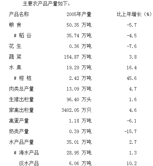 农业农村经济稳步发展。继续推进农业产业化、标准化、现代化,不断改善农田基础设施,加快农村城镇化建设步伐,进一步深化农村综合配套改革,农业基础地位得到加强。全年农业增加值44.15亿元,增长2.6%;农业总产值84.39亿元,增长3.7%。
