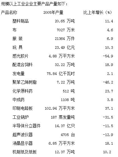 工业生产步入较快增长轨道。结构调整取得积极进展,名牌战略带动初见成效,产品市场竞争力提升,技术改造项目投入增加,一批工业项目已经或将陆续投产发挥效益,为经济发展增添新的活力。全年完成工业增加值297.21亿元,比上年增长14.6%,占全市GDP的比重由上年的44.3%上升为45.7%;工业对经济增长的贡献率达到57.7%。完成工业总产值1289.42亿元,增长14.2%。其中,规模以上工业产值758.57亿元,增长15.0%。国有及国有控股企业增长11.2%、集体企业增长11.2%、股份制企业增长17.5%、“三资”企业增长10.2%,大中型企业增长11.5%。规模以上工业实现销售产值735.28亿元,产品销售收入739.14亿元,分别增长14.9%和13.4%;出口交货值212.23亿元,增长11.2%;工业产品销售率96.9%,比上年提高0.7个百分点。高新技术工业企业进一步发展,全年高新技术产品产值193亿元;新产品产值11.87亿元,增长24.7%。全市工业用电量54.40亿千瓦时,增长12.8%。