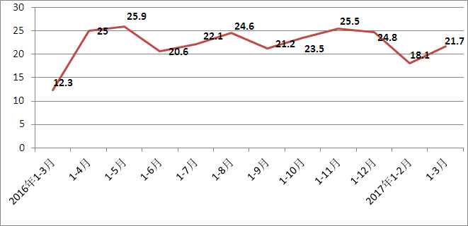 2017年1-3月,汕头市房地产开发投资50.53亿元,同比增长21.7%,增速比前两个月提高3.6个百分点。其中,住宅投资33.81亿元,增长21.1%,增速提高14.4个百分点。住宅投资占房地产开发投资的比重为66.9%。