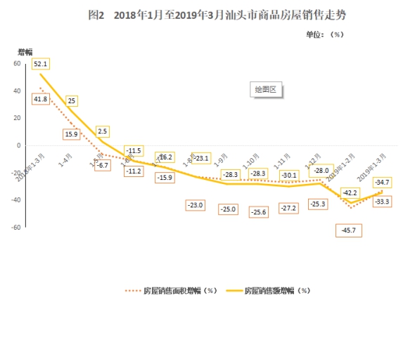 2019年一季度,商品房销售面积66.58万平方米,同比下降33.3%。其中,住宅销售面积58.73万平方米,下降38.6%;办公楼销售面积0.97万平方米,增长2001%,商业营业用房销售面积2.9万平方米,增长13.7%。商品房销售额下降35%。