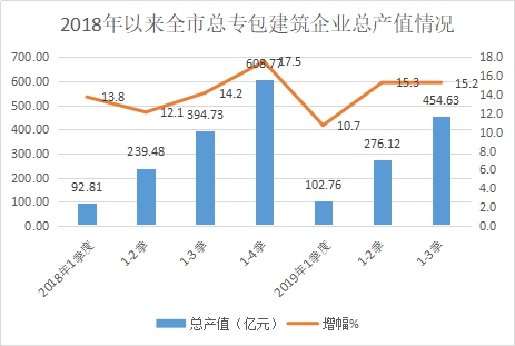 前三季,有89家总专包建筑企业产值保持增长态势,比1-2季度增加9家,比1季度增加12家,实现产值390.89亿元,增加的产值拉动全市产值增速18个百分点,产值增长的覆盖面拓宽。